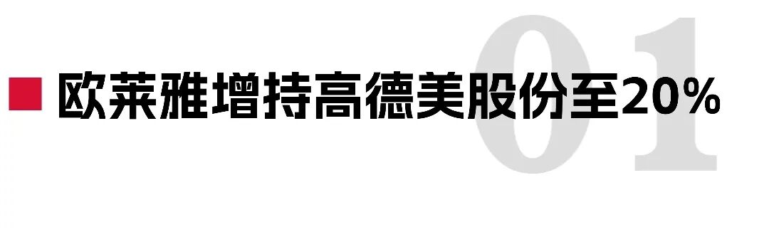 次发布,从由EQT牵头的财团手中收购高德美出格10%的股权。此次贸易后,欧莱雅对高德美的持股比例将增至20%。