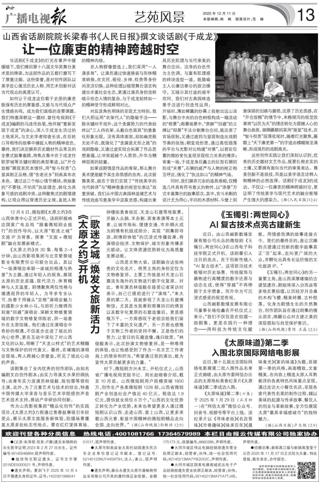 这些创作践诺让咱们深远知道到,杰出的史乘题材文艺作品,既要扎根史实的泥土,又要具有面向今世的审美表达。舞美更始不是炫技,而是以美学讲话解释人物心灵的势必挑选。话剧《于成龙》的获胜,不只让一位廉吏的心灵超过时空,更声明了古板美学与当代艺术的调和或许爆发壮大的浸染力。(据《百姓日报》12.4)